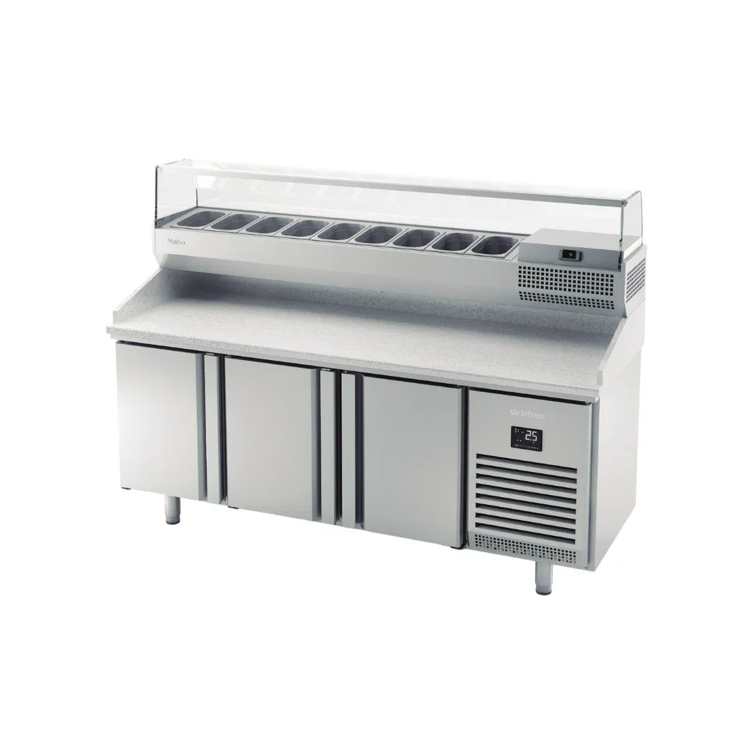 Table à pizza réfrigérée positive en granit 3 portes + kit